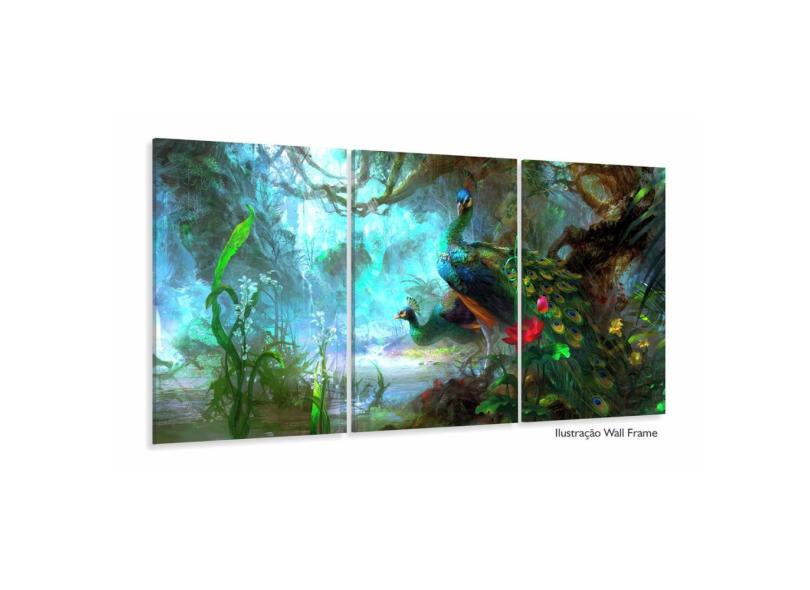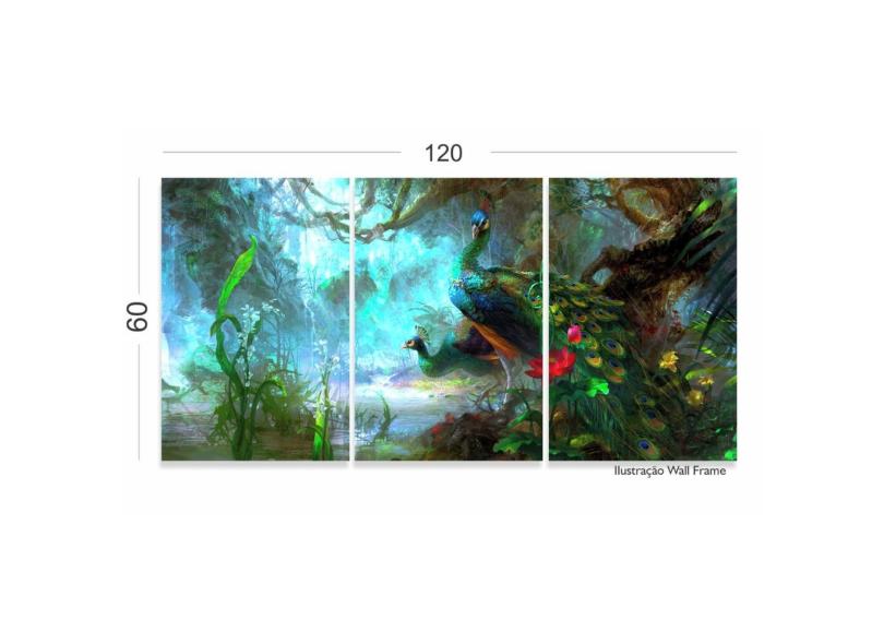 Quadro Paisagem Artístico Pavão Sala Em Tecido 3 Peças 120x6