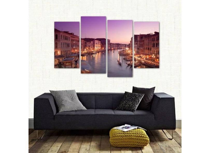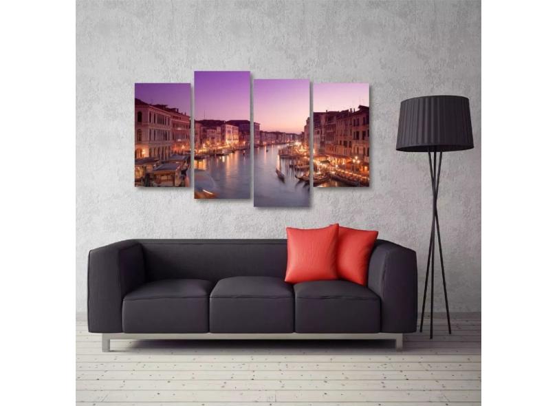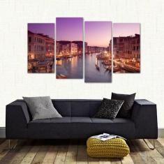 Quadro Paisagem De Veneza Escritório Sala Em Tecido 4 Peças