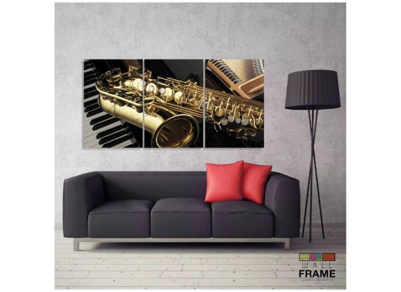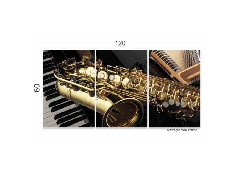 Quadro Piano Teclado E Saxofone Música Decorativo 120x60