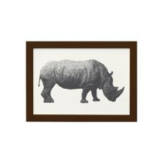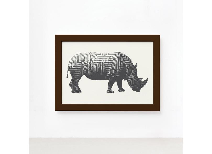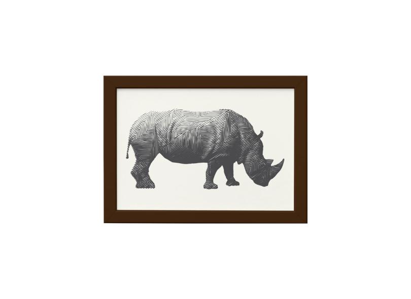 Quadro Safari Geométrico Rinoceronte Moldura Marrom 33x43cm