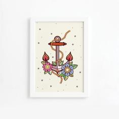 Quadro Vintage Moldura Marinha Âncora 33x43cm