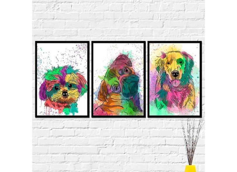 Quadros Cachorro Dog Colorido Kit 3 Decorativos Decoração