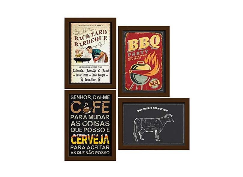 Quadros Churrasco Moldura Marrom 33x43cm 4un