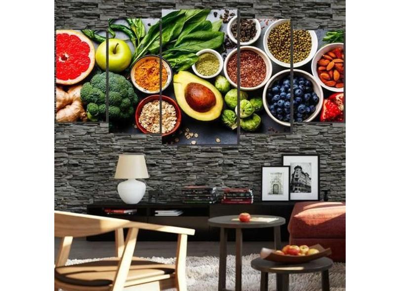 Quadros Decorativo 128x60 Frutas Verduras Castanhas 5 Peças