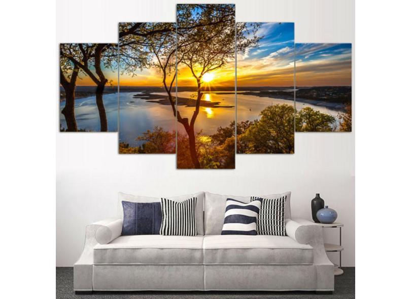 Quadros Decorativos 5 Peças Arvores Por Do Sol Paisagem