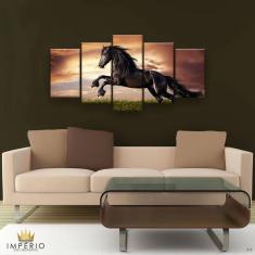 Quadros Decorativos Cavalo Negro Horse Hd Quarto Sala Kit