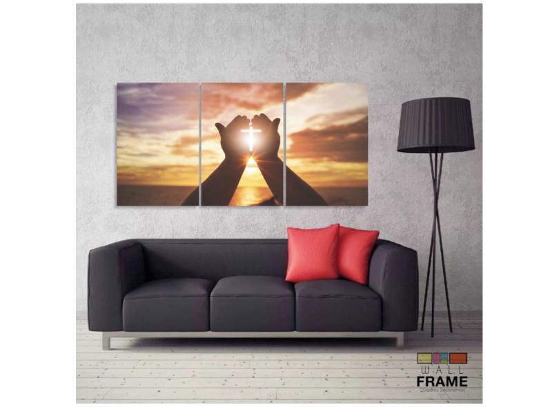 Quadros Decorativos Cruz Pôr do Sol Jesus Sala Quarto 120x60
