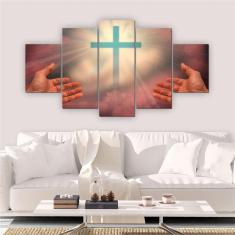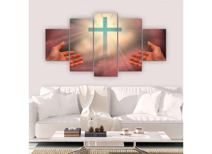 Quadros Decorativos Mosaico Quarto Sala Cruz 5 Peças