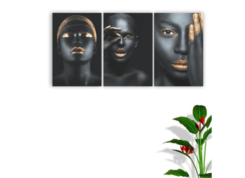 Quadros Decorativos Mulhere Negras Maquiagem 180X60