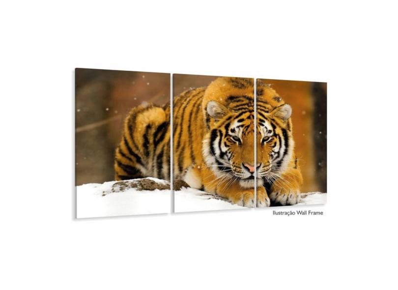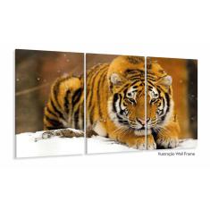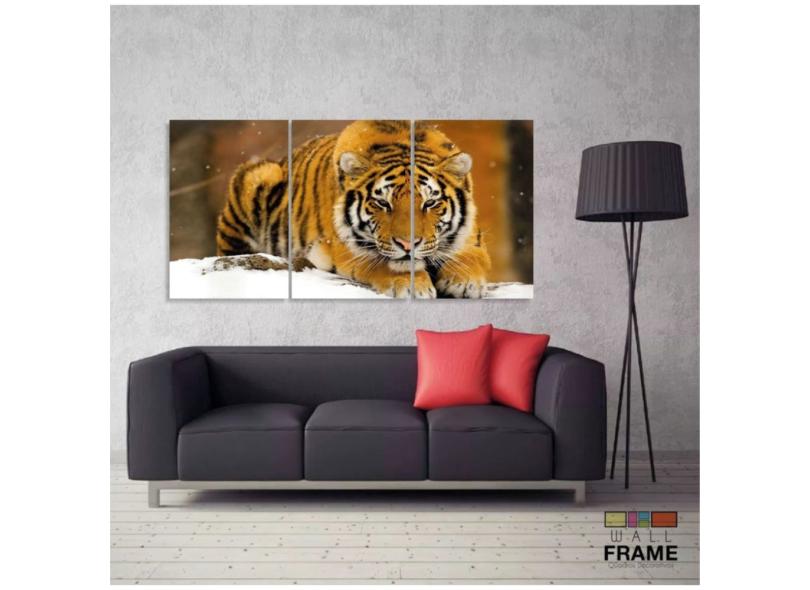 Quadros Decorativos Tigre Neve 120x60 3 peças mt em Tecido