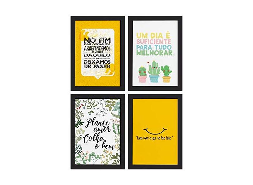 O menor preço encontrado no Brasil para Quadros Frases Vida Feliz Moldura 22x32cm 4un atualmente é R$ 195,21.