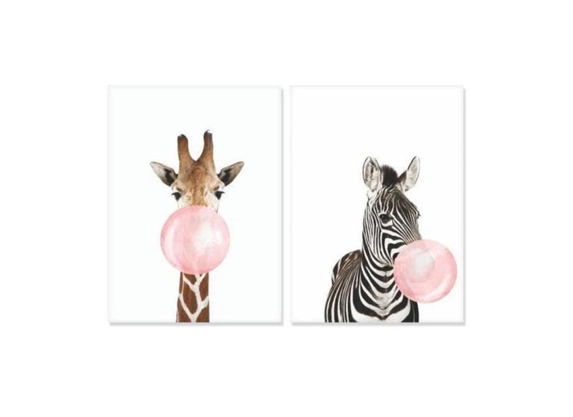 Quadros Girafa Zebra Mascando Chiclete 2 Peças 40X50