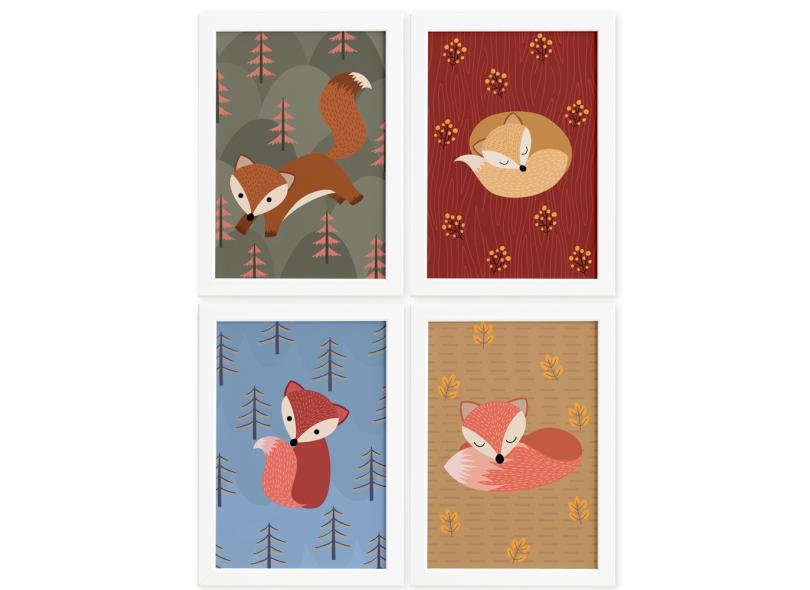 Quadros para Quarto de Bebê Raposinha Kit 4un 22x32cm