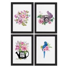 O menor preço encontrado no Brasil para Quadros para Sala Flores Aquarela Moldura 22x32cm 4un atualmente é R$ 195,21.