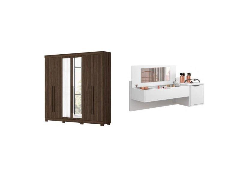 Conjunto Quarto de Casal Guarda Roupa 6 Portas Belém e Penteadeira Camarim Rouge Espresso Móveis Cedro/ Fosco