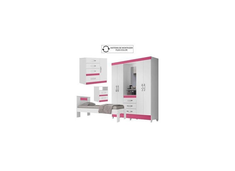 Quarto Completo Solteiro com Guarda Roupa Capri Esp. Cômoda Vênus Cama New Emília e Mesa de Cabeceira Apolo / Lilás/ / Flex Moval