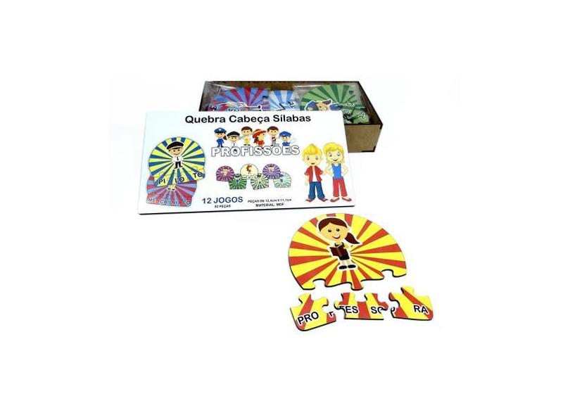 12 Kits Quebra Cabeça Educativo Aprendendo Silabas Profissões Madeira