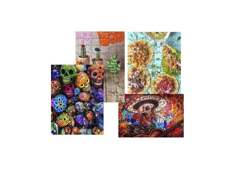 4 Quebra-Cabeças Atividades Cultura Mexicana 24 Peças - Coleção Tea