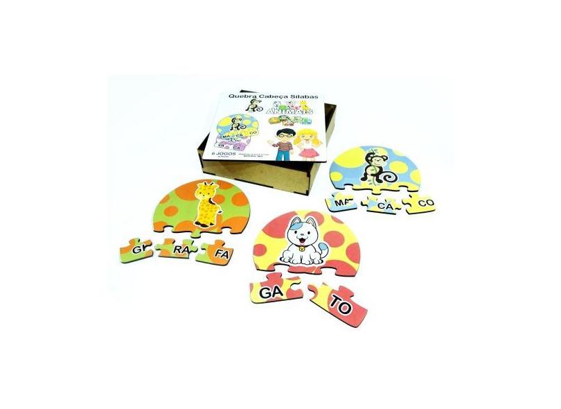 6 Kits Quebra Cabeça Educativo Sílabas Animais Em Madeira - Mega Impre