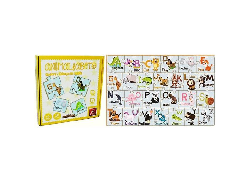 Animal Alfab Inglês Quebra Cabeça Brincadeira Criança 8122