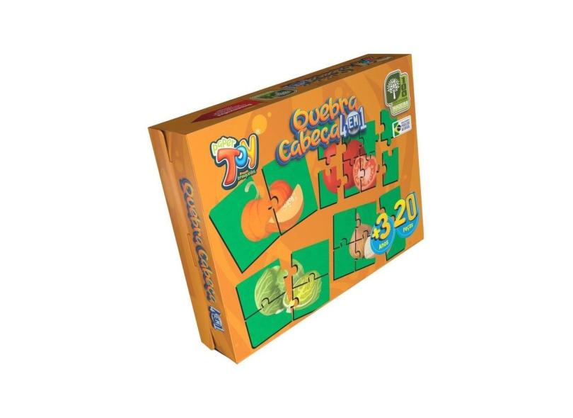 Brinquedo Quebra Cabeça 4 Em 1 Em Mdf 20 Peças Legumes +3