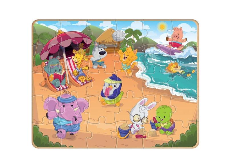 Brinquedo Quebra Cabeça Infantil Bichos em Férias 30 Peças Puzzle Infantil Grande em Madeira