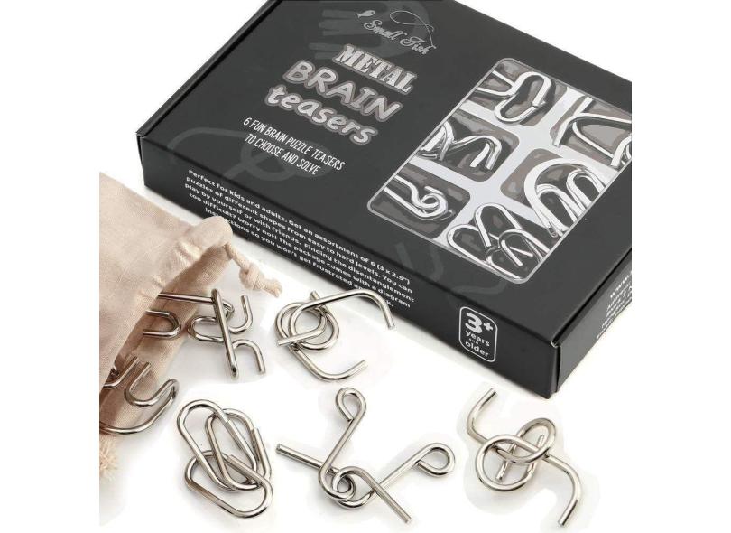 Conjunto de quebra-cabeças Brain Teaser SMALL FISH Metal, 6 peças para todas as idades