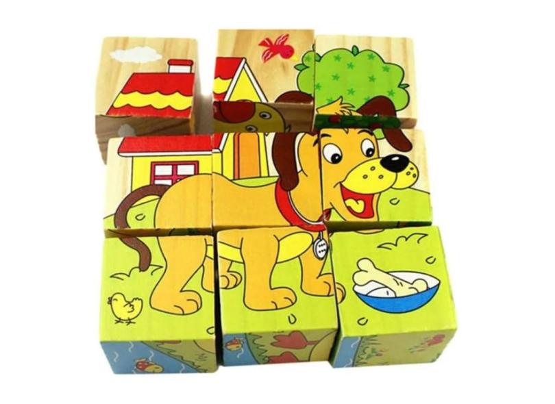 Cubos De Madeira De Brinquedo De Quebra-Cabeça 3D, 9 Peças Com Padrão De Animal De Desenho Animado