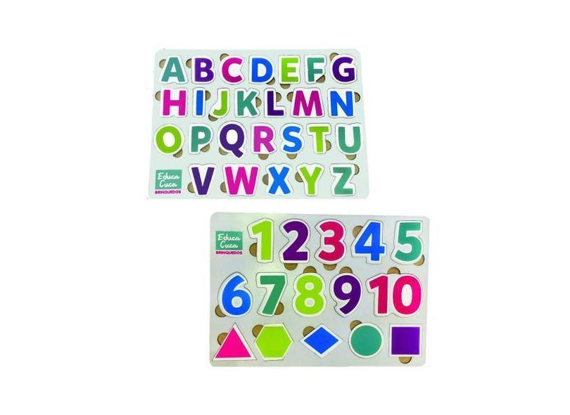 Kit 2 Quebra-Cabeças Educativo Numeros Formas + Alfabeto - Educa Brinq