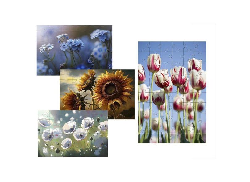 Kit 4 Quebra-Cabeças Atividades Mente As Flores 60 Peças