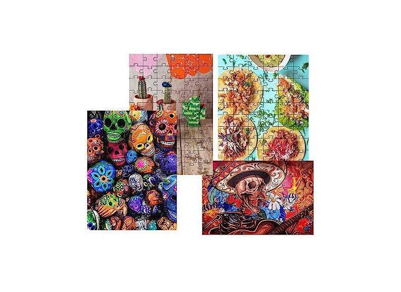 Kit 4 Quebra-cabeças Atividades para Mente Cultura Mexicana 24 peças