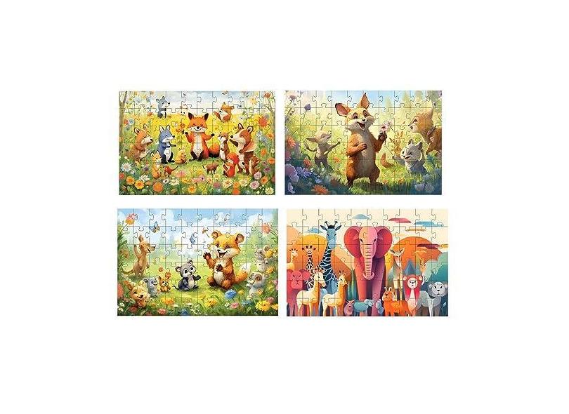 Kit 4 Quebra-cabeças infantis Bichinhos Fofinhos de 60 peças