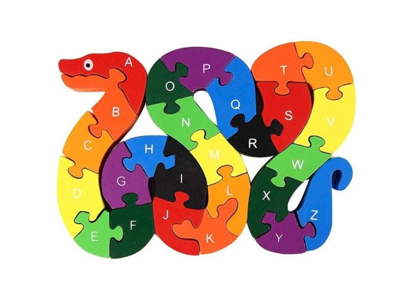lovestown Alphabet Jigsaw Puzzle Building Blocks Quebra-cabeça de madeira animal, letras de serpente de madeira Brinquedos de blocos de números para b