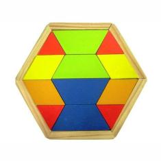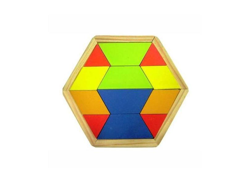 Mosaico Quebra Cabeça Colorido Sextavado - Madeira - 100% Artesanal