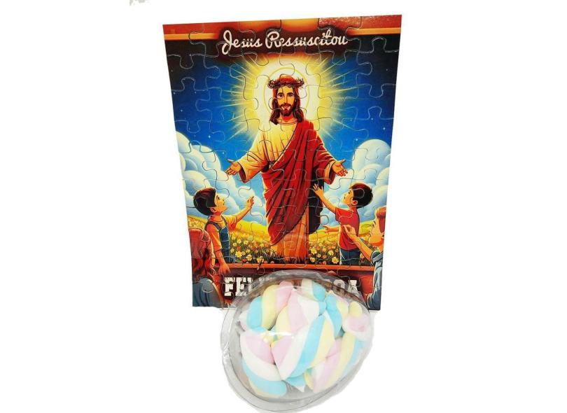 O menor preço encontrado no Brasil para Presente de Páscoa Marshmallow Colorido + Quebra-cabeça Jesus Ressuscitado de 60 peças atualmente é R$ 48,69.
