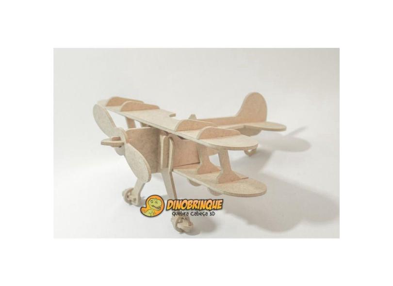 Quebra Cabeça 3D avião biplano 18 peças em mdf - dinobrinque