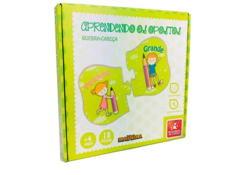 O menor preço encontrado no Brasil para Quebra Cabeça Aprendendo os Opostos 18 pcs madeira 4 anos atualmente é R$ 36,00.