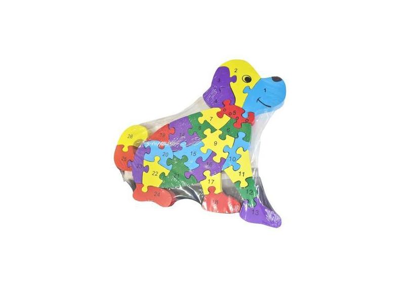 Quebra Cabeça Colorido No Formato De Dog Em Madeira 26Pçs - Fato Toys