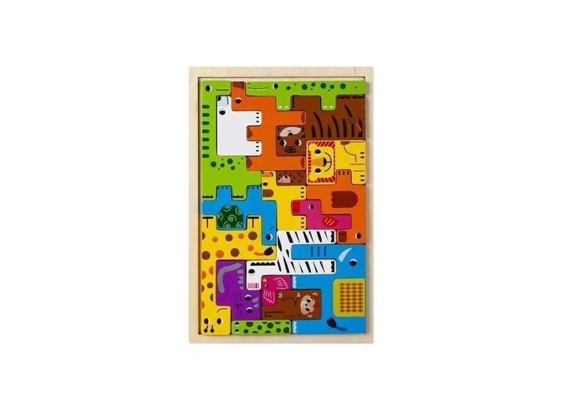 Quebra-Cabeça de Madeira Montessori - Transporte de Animais - Blocos d