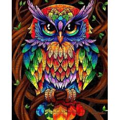 Quebra-cabeça em MDF Coruja Colorida Puzzle de 300 peças