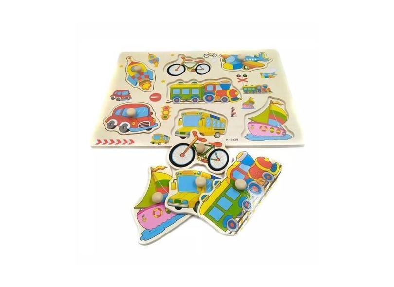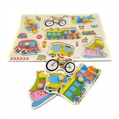 Quebra Cabeça Infantil Dony Toys Veículos Educativo Madeira Com Pino -