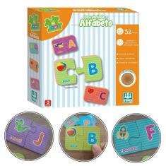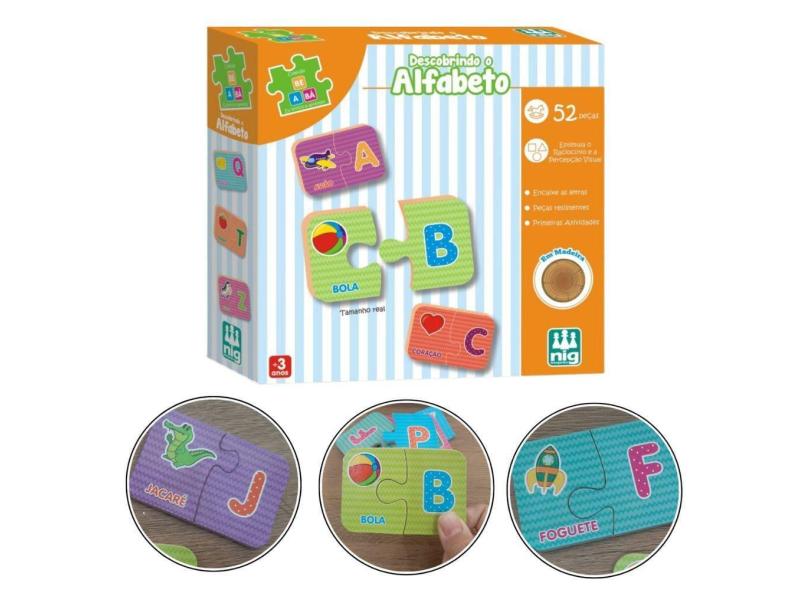 Quebra Cabeça Infantil Pedagógico Descobrindo O Alfabeto 52 Peças - Brinquedo NIG Madeira