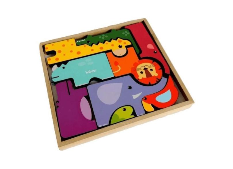 Quebra Cabeça Monte E Empilhe De Madeira Safari - Babebi