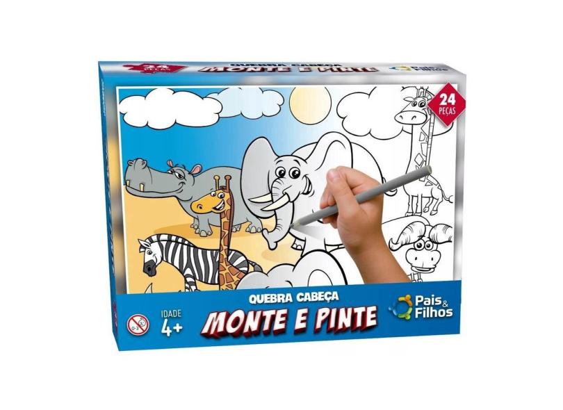 Quebra Cabeça Monte E Pinte 24 Pç Animais Safari Pais Filhos