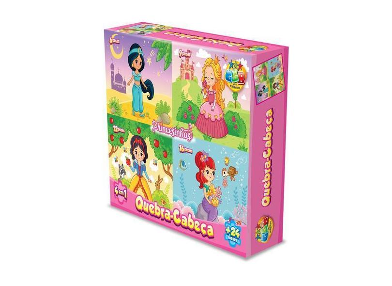 Quebra Cabeça Princesas 4 Em 1 Diversão Criança Presente - GGB, Quebra
