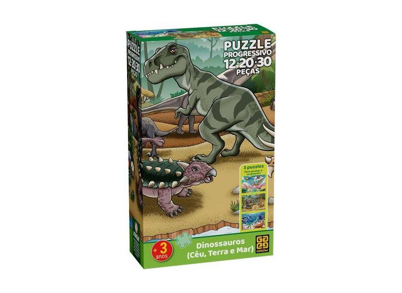 Quebra-cabeça Progressivo Dinossauros - Céu, Terra e Mar - Grow