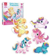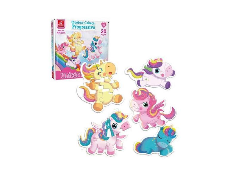 Quebra Cabeça Progressivo Unicórnios 20 Peças Gigantes Em Madeira Brin