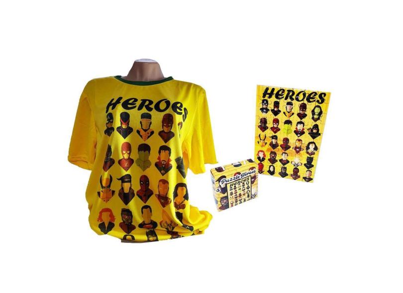O menor preço encontrado no Brasil para Quebra-cabeça Puzzle Heroes de 60 peças + Camisa Heroes Dry Fit atualmente é R$ 82,45.