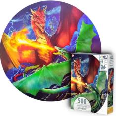 Quebra Cabeça Redondo Batalha Dos Dragões 500 Pçs Decorativo