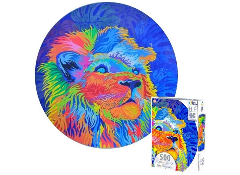 Quebra-cabeça Redondo Leão Majestoso c/ 500 Peças Decorativo